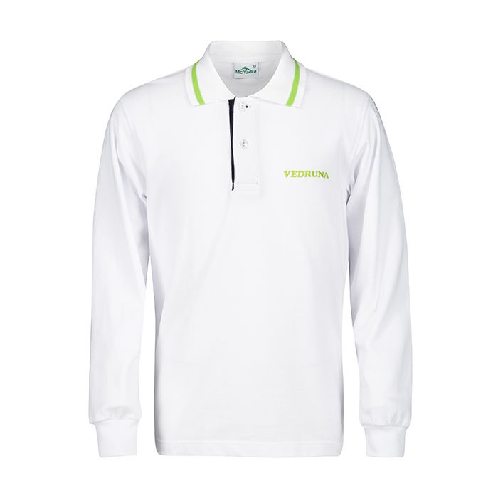 • Polo colegial de manga larga, realizado en piqué con cuello de canalé, puños de elástico